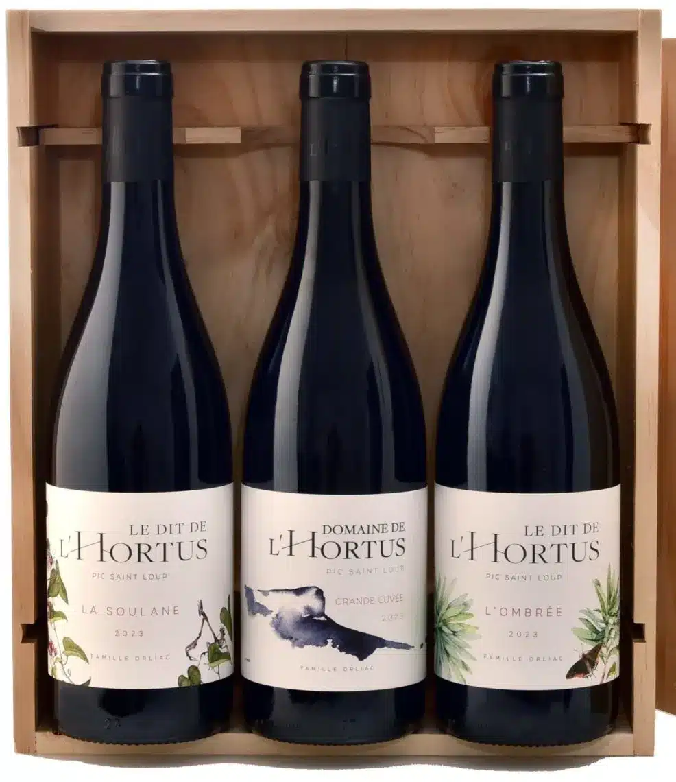 Le Domaine de l’Hortus a déjà fait l’objet de nombreux articles sur Publik’Art pour souligner la qualité de ses cuvées. Il propose aujourd’hui un Coffret Fêtes de Noël (tarif TTC: 180 euros) avec 3 cuvées 2023 qui appartiennent toutes à un millésime classé parmi les grands millésimes de rouge, rappelant celui de 1998 vu comme un idéal de vin rouge. La dégustation concerne la cuvée Domaine de l’Hortus Grande Cuvée rouge, AOP Pic Saint Loup issue des plus terroirs sous les falaises du Pic Saint Loup et celle de l’Hortus, la cuvée Dit de l’Hortus L’Ombrée issue des plus belles parcelles exposée plein nord à l’ombre du Pic Saint Loup et la parcelle Dit de l’Hortus La Soulane exposée plein sud sous les falaises de l’Hortus.