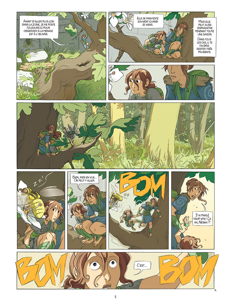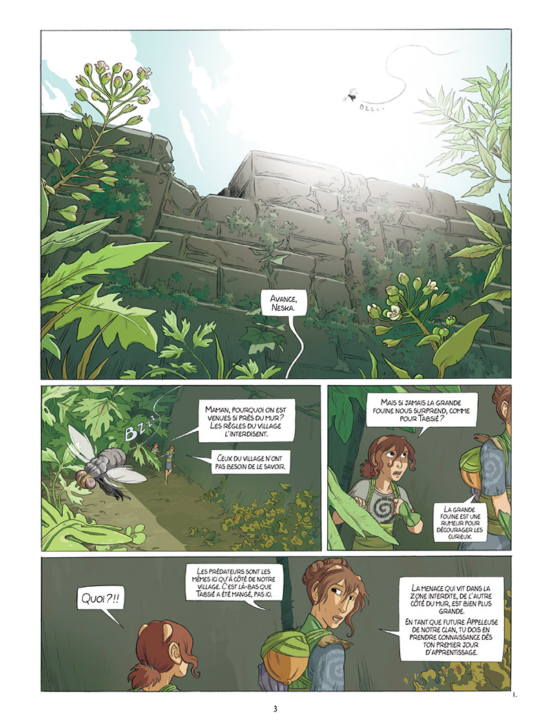 Pour cela, elle utilise des couleurs très végétales, et on a bien le sentiment d’être, comme Neska et sa famille, au milieu des hautes herbes et des végétaux. Le dessin est très détaillé et amène le lecteur à la recherche de petits détails. Néanmoins, en ce qui concerne l’histoire, on reste clairement sur notre fin : une intrigue inexistante et des personnages pas suffisamment attachants.