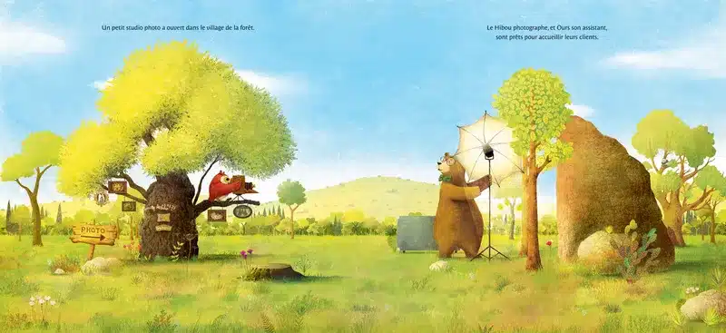Dans le village de la forêt, Ours et Hibou tiennent un studio photo où défilent des familles de toutes sortes – éléphants, gorilles, serpents et plus encore – pour immortaliser leurs liens. Mais un jour, un petit panda arrive… seul. Comment capturer une photo de famille quand on n’a personne avec qui poser ? Cette situation, à la fois touchante et drôle, devient le fil conducteur d’une histoire où l’empathie et la bienveillance émergent naturellement.