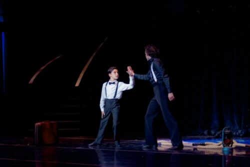 La première partie se grise d’enfance et de rêve, déployant, dans une chorégraphie ciselée, l’éveil artistique d’Aznavour. On devine l’empreinte de l’Arménie et les ombres incontournables de Piaf, Sinatra ou encore Fred Astaire, chacun esquissant leurs influences au détour d’un pas de deux aérien.