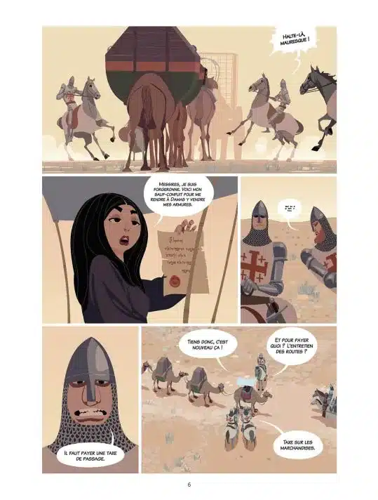 Au centre de l’histoire, Séraphine, une forgeronne talentueuse dont le village est menacé par les pillages de croisés francs. Refusant la fatalité, elle entreprend un voyage jusqu’à Jérusalem afin de recruter une troupe de chevaliers capables de défendre les siens. Le « casting » donne naissance à un groupe hétéroclite, aux caractères bien trempés, où incompréhensions culturelles, rivalités et dialogues anachroniques font mouche.