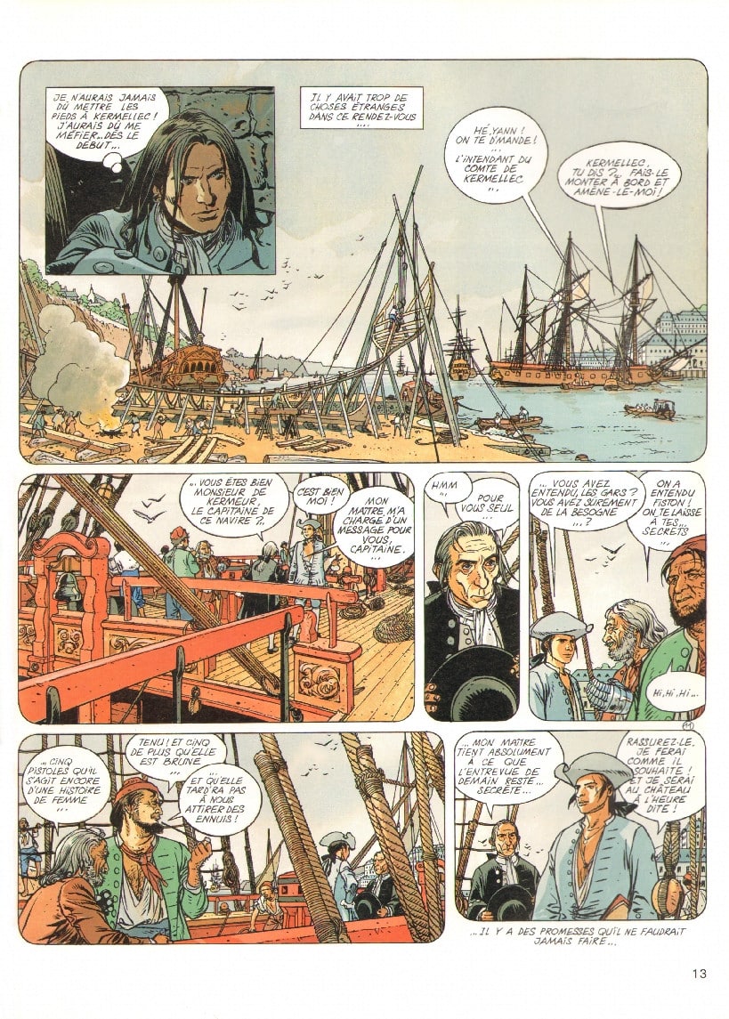 1741. Le corsaire Yann de Kermeur se rend au domaine de Kermellec pour un rendez-vous tardif. À peine arrivé, des cris l’attirent dans la chapelle où il découvre le comte mortellement blessé. Yann recueille ses dernières paroles : une statuette aztèque, un mystérieux portrait… Soudain l’on surgit, prenant le corsaire pour le meurtrier. L’Épervier vient de tomber dans un funeste traquenard…