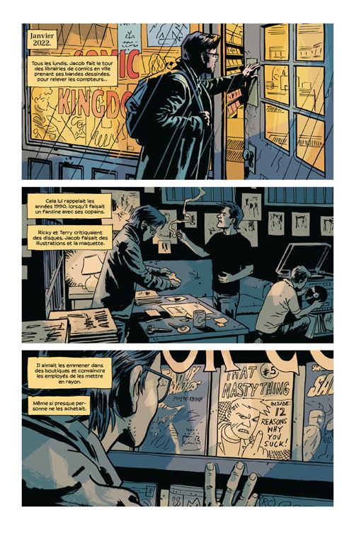 Brubaker et Phillips reviennent dans l’univers de Criminalavec Les Acharnésun volume hors-série qui frappe encore par sa noirceur et sa profondeur. Trois destins y convergent : Jacob, scénariste de BD qu’Hollywood tente de broyer tout en l’aspirant ; Angie, enfant de l’Undertow, hantée par la douleur, dont la colère est devenue colonne vertébrale ; et Tracy Lawless, figure fantôme, vétéran et revenant, qui fait une nouvelle apparition dans cette ville qui l’a fait et défait.