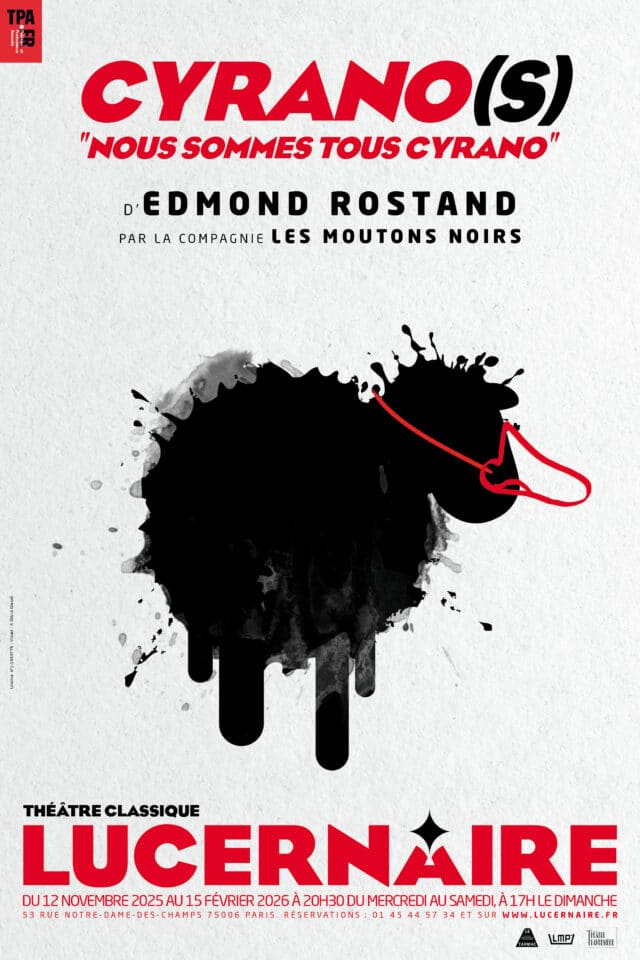 Nous sommes tous Cyrano ! Cyrano aime Roxane mais il se trouve trop laid. Christian aime Roxane mais il se trouve trop bête. Roxane aime Christian mais elle aime aussi, sans le savoir, l’esprit de Cyrano. Et si tous, nous portions un nez devenu monstrueux à force de ne voir que lui. Cyrano nous touche parce qu’il est profondément humain. Nous partageons ses rêves, ses aspirations, sa soif de liberté, mais aussi ses imperfections, ses complexes. Animés par l’amour de ce texte, Les Moutons Noirs rendent hommage au chef d’oeuvre d’Edmond Rostand tout en y ajoutant leur patte et leur folie.