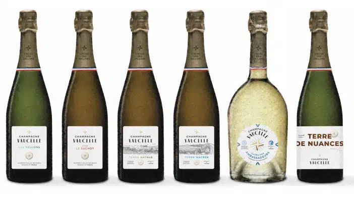 Les 6 cuvées de la maison Vaucelle ont été dégustées avec un menu proposé par L’Evadé. Au préalable, Jeremy Bovy a abreuvé les 20 invités de détails savants sur la maison Vaucelle. 2025 est la première saison proposée à la vente avec 6 cuvées au spécificités assez différentes. Avec 150 000 bouteilles, la production est encore assez peu importante mais devrait gagner en volumétrie dans la prochaines années. Le grand responsable Thomas Cheurlin était hélas absent pour cause de virus de saison mais le moment était tout de même d’une convivialité rassérénante. La première cuvée dégustée fut le Brut Sans Année Les Vallons (29 euros prix de vente caveau) composé principalement de Pinot Noir avec une touche de Chardonnay. Parfait pour les apéritifs et les soirées festives, mais également pour accompagner tout un repas avec une viande. La bouche est fraîche avec un équilibre entre minéralité et fruité du Pinot noir pour une belle longueur. Deuxième dégustation, le Blanc de Blancs Terre Nacrée composé de 100% de Chardonnay (38 euros Prix de vente caveau). Son nez est aérien avec des touches de fruits blancs comme la pêche de vigne. Les bulles sont très fines pour un vin où l’on retrouve des notes très florales comme l’acacia et brioché voire mielleuse. Le champagne est vif et minéral qui accompagne très bien une viande rouge type côte de bœuf ou en dessert avec une salade de fruits rouges. Troisième cuvée dégustée, le Blanc de Noirs Terre Natale est composé de 100% de Pinot noir (38 euros prix de vente caveau). Les bulles sont très fines pour un vin partiellement vieilli sous foudre qui propose maturité et rondeur. Le champagne accompagne parfaitement une pintade à la sauce aux morilles ou encore des tagliatelles de Saint-Jacques. Vint ensuite le Champagne Terre de Nuances cuvée éphémère, composé de 100% Pinot blanc (45 euros prix de vente caveau). La cuvée est numérotée, limitée, et il changera tous les ans en fonction du travail en cuverie. En bouche, la fraîcheur et la bulle fine de cevin apparaissent immédiatement, grâce à un dosage faible et les notes de Pinot blanc pour un champagne gourmand. Le champagne est rare (seulement 2 000 bouteilles par an) et vraiment original. Il se déguste à l’apéritif et peut accompagner du poisson comme une dorade grillée. Le Champagne rosé Le Suchot est particulièrement gourmand composé de 100% de Pinot noir (32 euros prix de vente au caveau). La bouche est fraîche, agréable et équilibrée avec une belle longueur, élément essentiel pour les cocktails et soirées festives, également pour les desserts. Enfin, la cuvée des Ambassadeurs fut dégustée pour une vraie confirmation de la qualité. C’est une cuvée prestige, référence de la maison connue des ambassades à Paris. Assemblé avec 80% de Pinot noir et 20% de Chardonnay (69 euros prix de vente caveau), la Cuvée des Ambassadeurs est la crème de la crème de la Maison Vaucelle pour un champagne élaboré uniquement lors des belles années de vendanges. C’est une cuvée à proposer pour les repas de fêtes avec une dinde à la sauce crémeuse au foie gras ou avec du fromage
