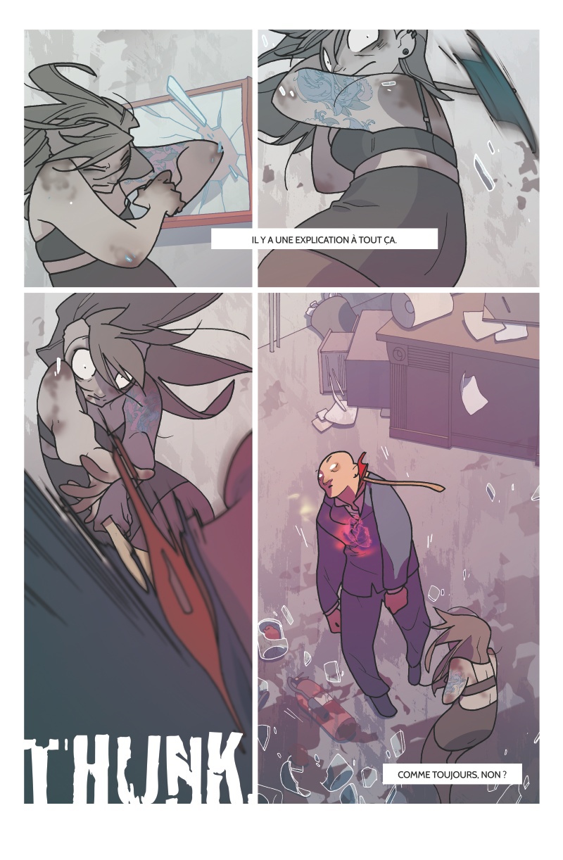 Le récit de Kelly Thomson, basée sur une idée intéressante, presque philosophique, n’est malheureusement pas assez abouti. Le début se fait lent, on accroche au milieu du récit à l’intrigue, puis le tout s’essouffle tout doucement. Vraiment dommage. Quant aux dessins, ils sont très agréables et la coleur alterne autour de différentes palettes en fonction des sentiments du personnage principal.