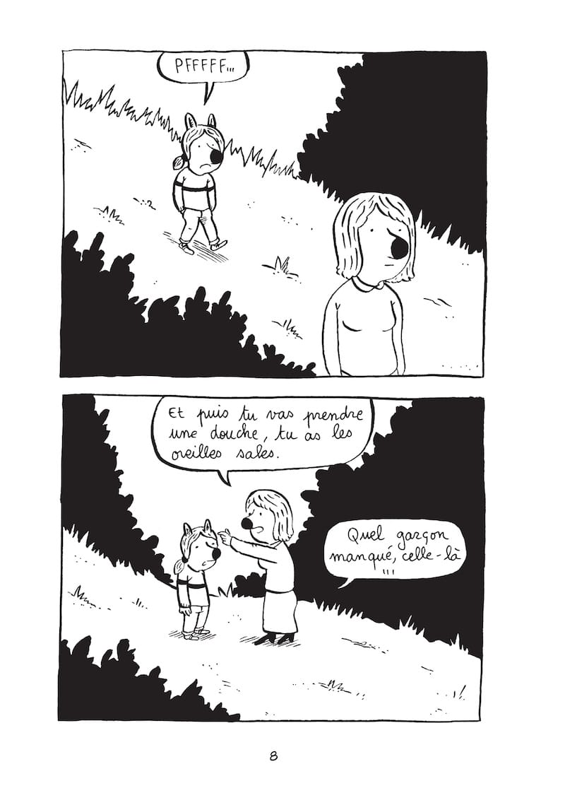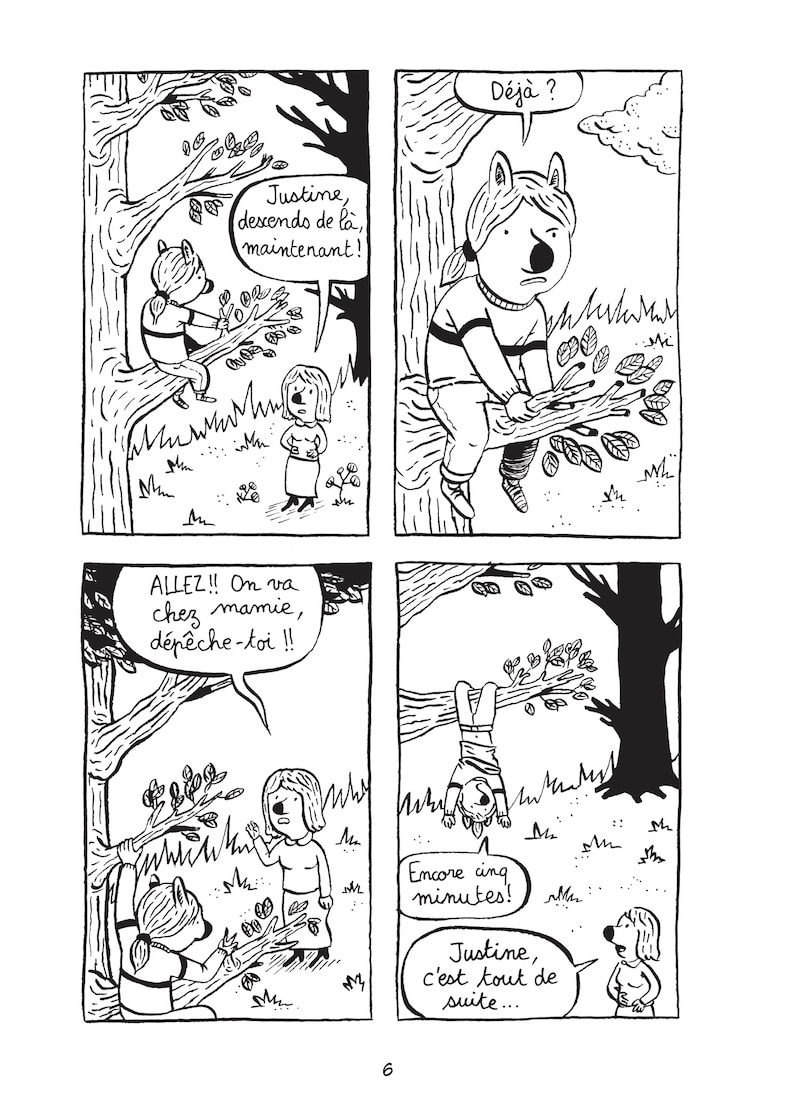 Le récit est touchant, mais manque toutefois d’étoffe. On aurait aimé pousser l’introspection, voir le personnage traverser toutes les étapes de sa transformation. Les dessins tout en noir et blanc, révèlent des personnages aux traits animaliers, mais très expressifs. Justin est donc une bande-dessinée qui soulève des questions importantes avec une grande délicatesse.