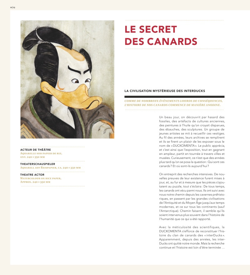 L’art du canard est avant tout une surprise quand on découvre ce livre en librairie. A première vue, on se demande ce que c’est : un livre loufoque, un livre d’art, le fruit de notre imagination, un monde parallèle … Et bien, c’est tout ça à la fois !