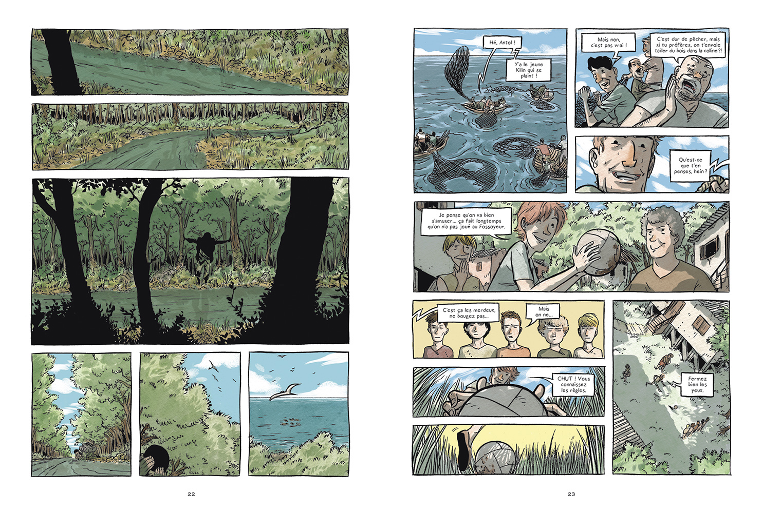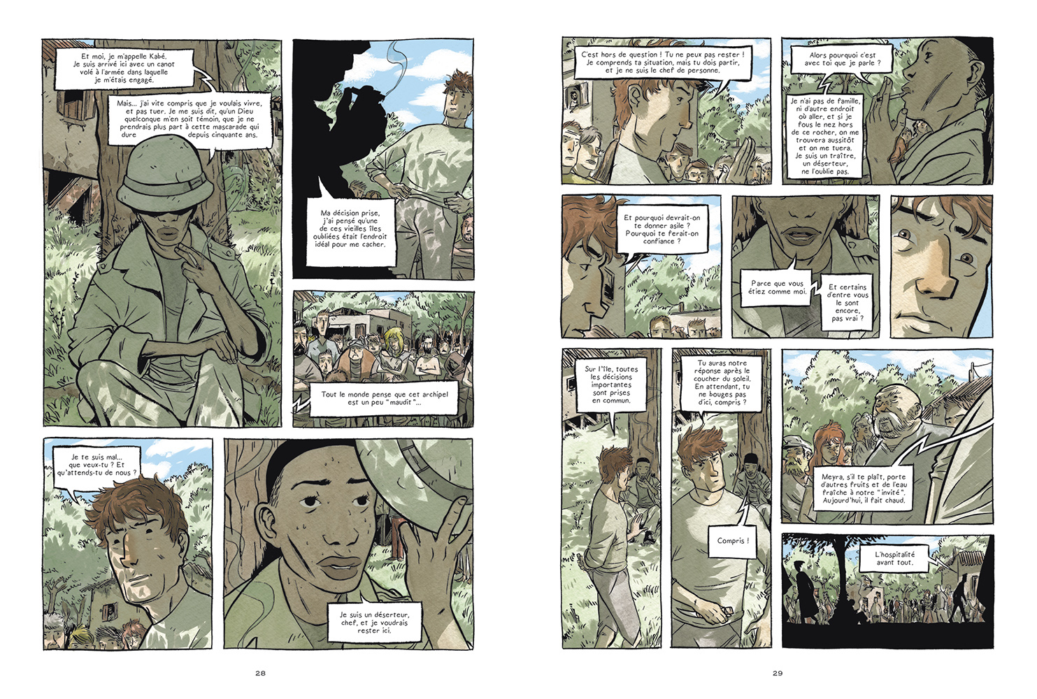 Lorenzo Palloni nous livre ici un récit très dynamique et palpitant, réalisant lui-même ses illustrations très détaillées et végétales. L’île est une bande-dessinée qui se lit très facilement.