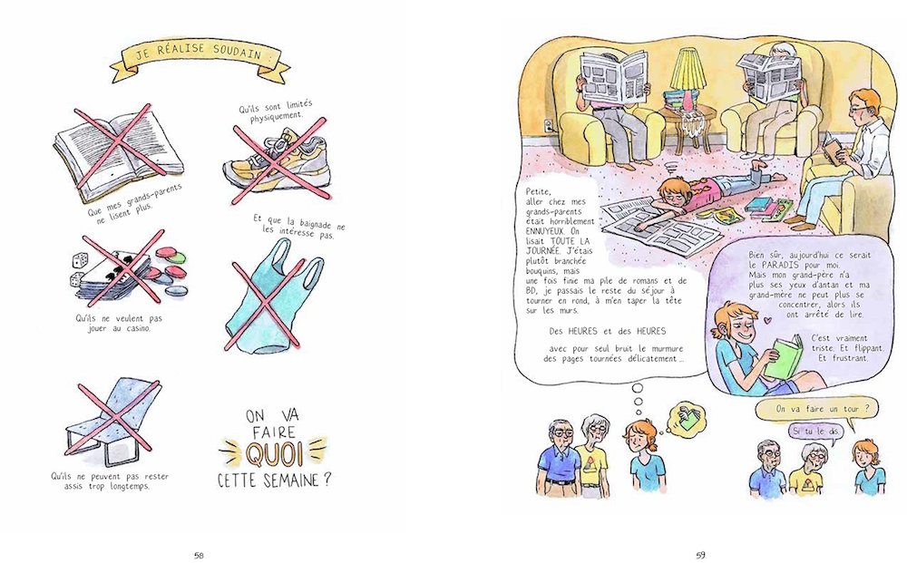 Ça, c’est sur le papier, parce qu’après il y a la réalité ! La croisière va s’annoncer plus difficile que prévue : les incontinences, les regards vides, les fugues, la monotonie, la morosité … Voir vieillir ceux que l’on aime, c’est très difficile, surtout lorsqu’il y a un écart de deux générations.