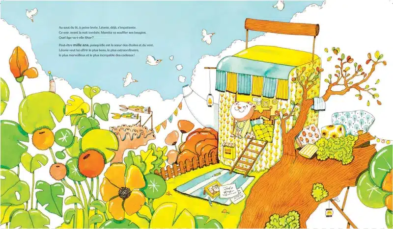 Léonie parcourt son univers, scrute les moindres recoins, imagine cent objets, cent attentions, cent surprises. À travers ses idées, le récit célèbre l’amour entre générations, la spontanéité, la créativité enfantine. C’est une histoire simple, douce, sensible — un hommage tendre à l’enfance vue par un regard qui cherche à rendre heureux.