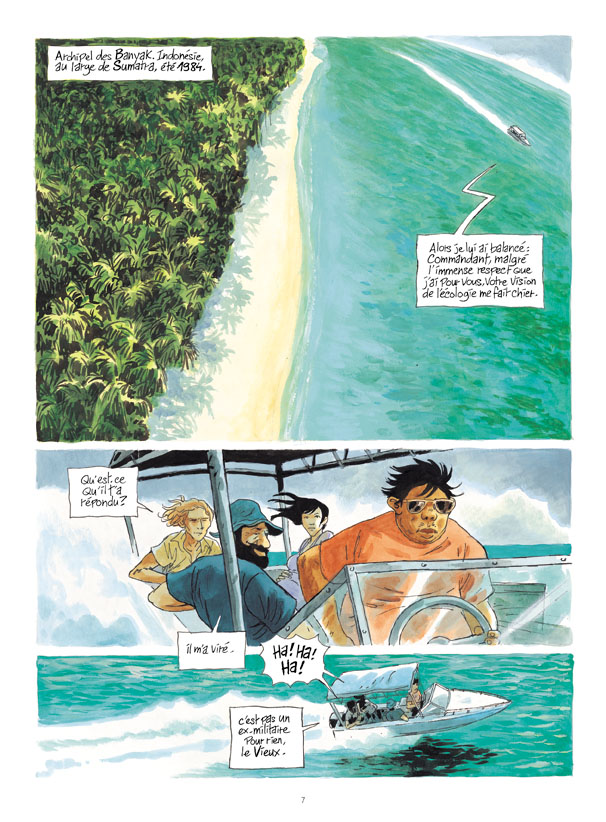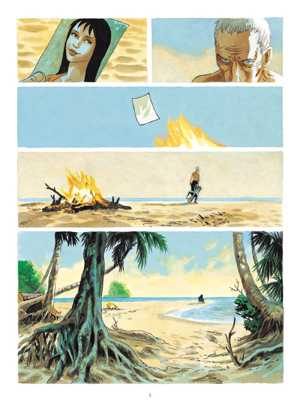 Le scénario prend tout son temps pour délivrer sa puissance onirique. C’est d’abord le dessin qui tisse un lien entre cette histoire de vengeance et le lecteur. Bulles dynamiques avec ces plages de sable fin et cet océan paisible… et dangereux. Des apparences trompeuses pour des caractères trempés dans l’acier le plus incassable. Quand le drame survient, la surprise le dispute à l’abattement. Ce n’est pas un personnage qui disparait mais deux en même temps, dans un moment d’injustice caractérisée. L’innocence est abattue par cette nature non pas cruelle mais implacable. Le doux rêve tropical se change en cauchemar. Ce crocodile retors et apparemment irrésistible est-il une machine à tuer ? Un animal uniquement assoiffé de sang comme le requin de Spielberg ? Un esprit changé en bête sauvage ?