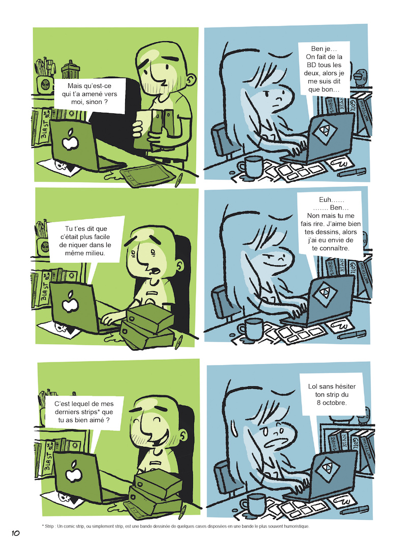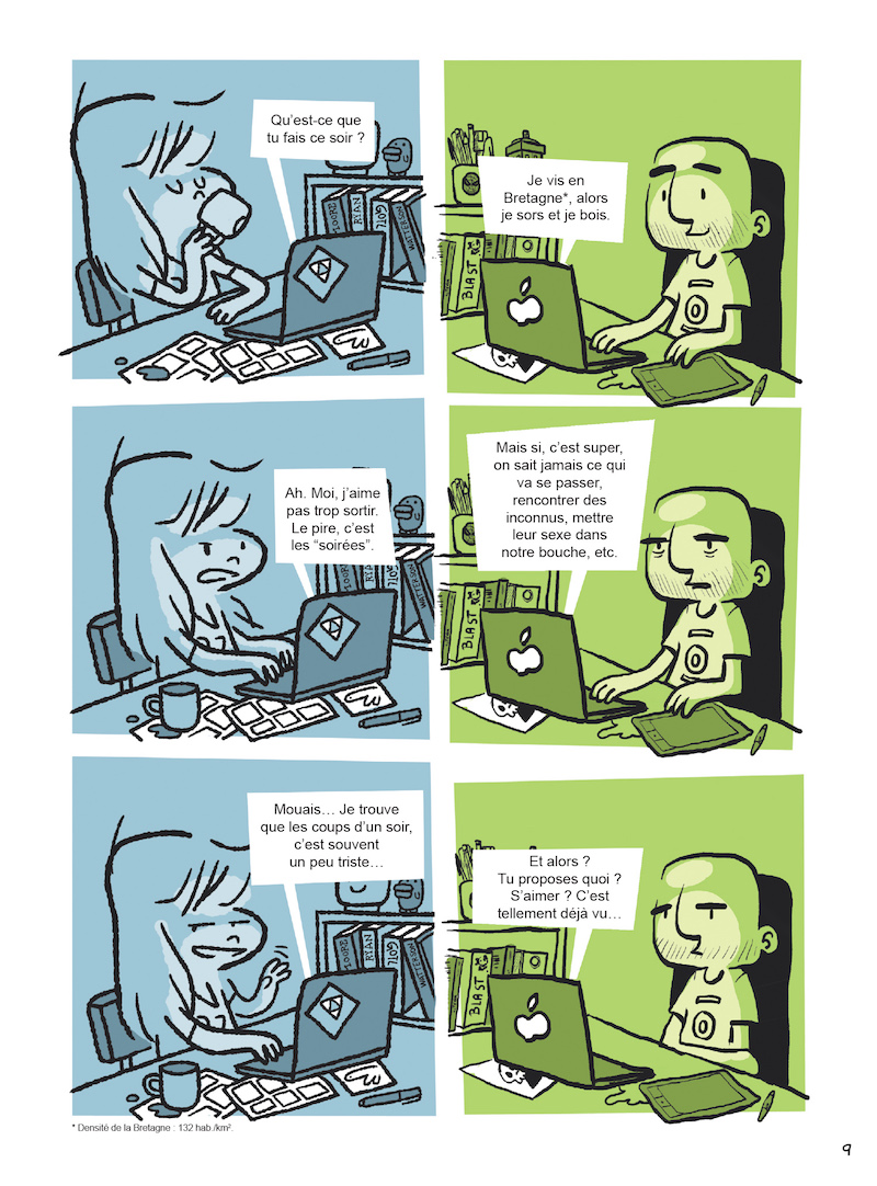 Depuis Internet, c’est bien plus facile d’aller sur YouPorn mais ça n’a pas rendu les rapports amoureux plus simples ! Une relation à travers des écrans plats est-elle vouée à rester platonique ? Faire le même métier, ça permet de choper plus vite ? Davy et Elosterv donnent leurs réponses dans une BD sur eux, sur les relations virtuelles et « IRL » et sur l’amour un peu foireux qui finit mal (en général).