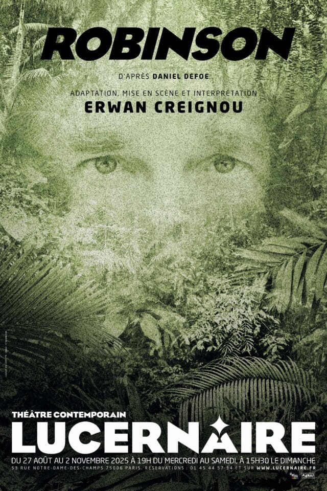 Le Lucernaire laisse toute la place nécessaire à Erwan Creignou pour adapter, mettre en scène et interpréter le roman d’aventures anglais Robinson Crusoé de Daniel Defoe, publié en 1719. Mais la pièce s’éloigne du roman original pour emprunter également à Michel Tournier et Chamoiseau, de quoi découvrir une variation originale portée par l’auteur/comédien tout en verve et en passion contenue.